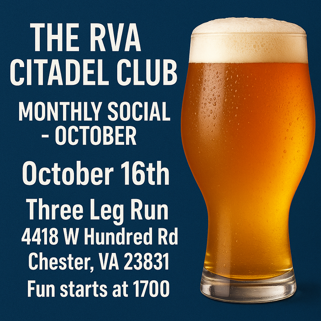 Home RVA Citadel Club Monthly Social RVA Citadel Club Monthly Social + Add to Google Calendar + iCal / Outlook export Date Oct 16 2025 Time 5:00 pm Organizer RVA Citadel Club Email [email protected]